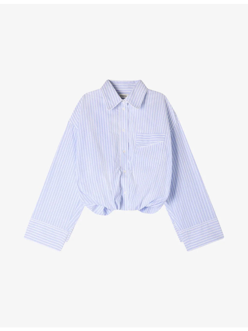PRODUCT DETAILS - Sandro cotton shirt - 100% cotton - Exposed button fastenings at front - Boxy cropped fit, collared, patch pocket at the chest, long sleeves, all-over stripe print - Machine wash mild - True to size - Model is 5ft 8in /1.73m and wears a size 8 - Lightweight, non-stretch Ref: R04598315