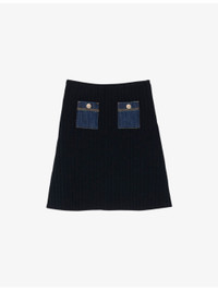 Denim-Pocket Knitted Mini Skirt