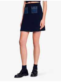 PRODUCT DETAILS - Sandro knitted mini skirt - 52% viscose, 46% polyamide, 2% elastane - Regular fit, elasticated waist, denim patch pockets - Hand wash - True to size - Model is 5ft 9in/1.75m and wears a size UK 8 - Lightweight, slight stretch Ref: R04490583