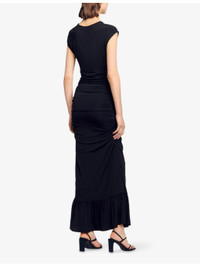 Draped Round-Neck Slim-Fit Stretch-Woven Maxi Dress