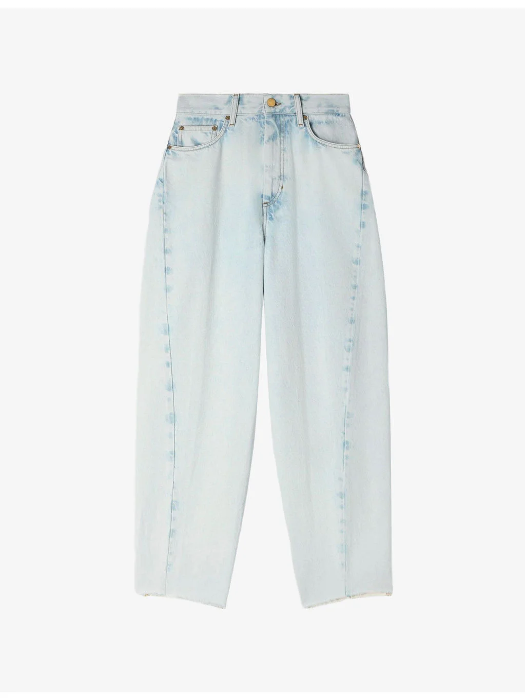 PRODUCT DETAILS - Sandro denim jeans - 100% cotton - Button and zip-fly fastening - Regular fit, high rise, belt loops, five pockets, barrel wide leg - Machine wash at 30°C - True to size - Model is 5ft 11in/1.80m and wears a size UK 8 - Midweight, non-stretch Ref: R04578742