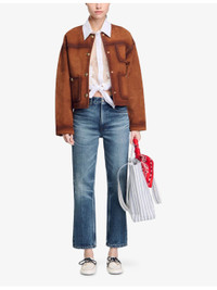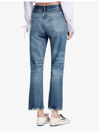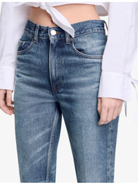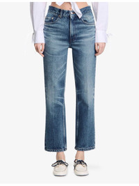 PRODUCT DETAILS - SANDRO denim jeans - 100% cotton; lining 65% polyester, 35% cotton - Straight leg-fit, mid-rise, cropped, five pockets, belt loops, all-over contrast top stitching, destressed hem detailing, all-over washed effect - Machine wash at 30°C - True to size - Model is 5ft 10in/1.78m and wears a size UK 8 - Midweight, non-stretch Ref: R04411958
