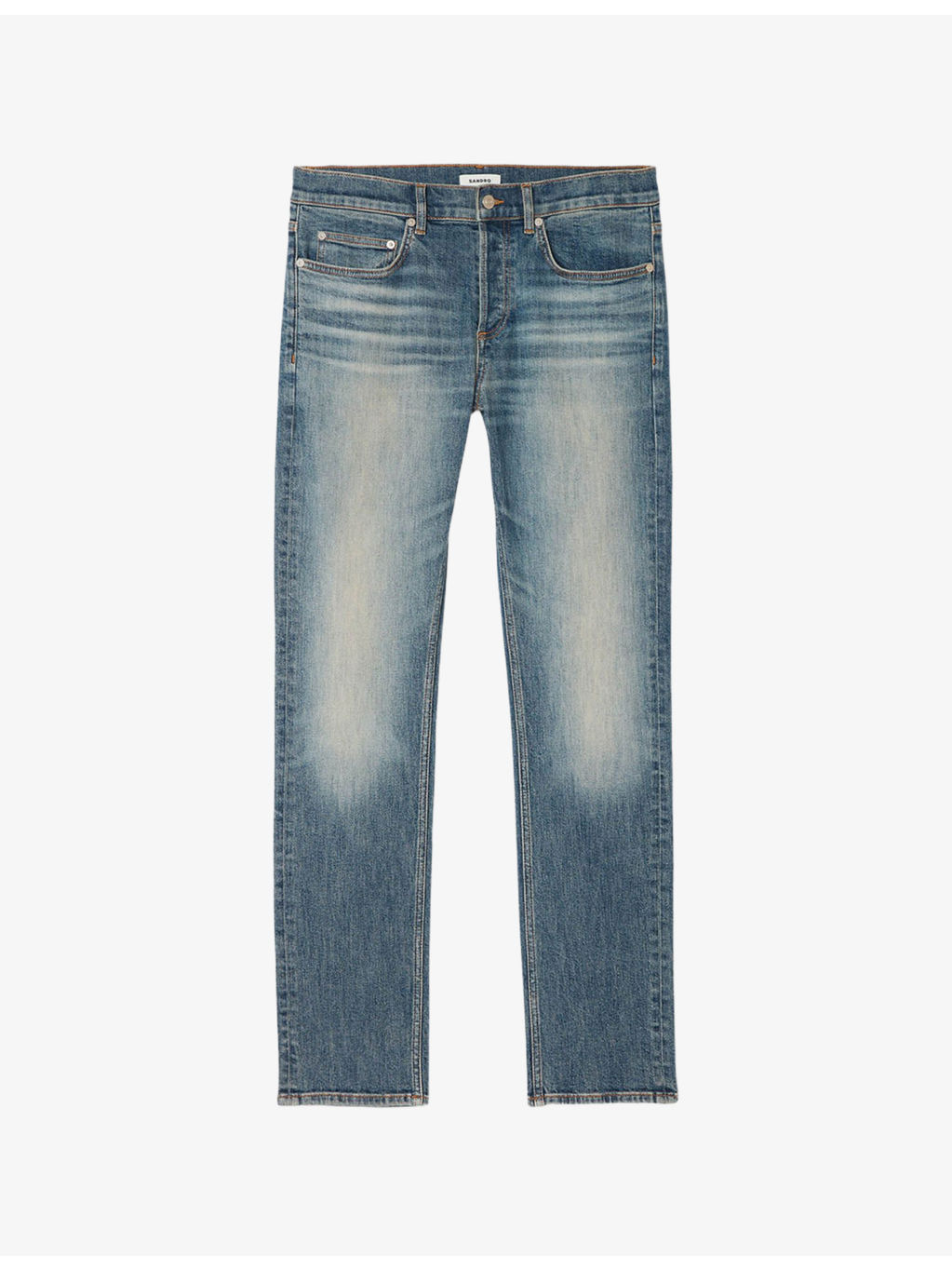 PRODUCT DETAILS - Sandro denim jeans - 98% cotton, 2% elastane - Button and zip-fly fastening at front - Slim fit, structured waistband, belt loops, classic five pockets, faded wash, leather patch at back, whiskering detailing - Machine wash at 30°C - Made in Turkey - Midweight, non-stretch Ref: R04517281