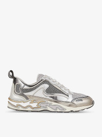 PRODUCT DETAILS - Sandro leather and mesh low-top trainers - 100% leather and mesh - Lace-up fastening - Almond toe, flame-embossed chunky sole, mesh and neoprene inserts, ‘Flame’ pull tab - Wipe with a clean, dry cloth - Upper: 100% leather - Lining: 65% cotton, 35% polyester - Sole: 100% rubber Ref: R04197943