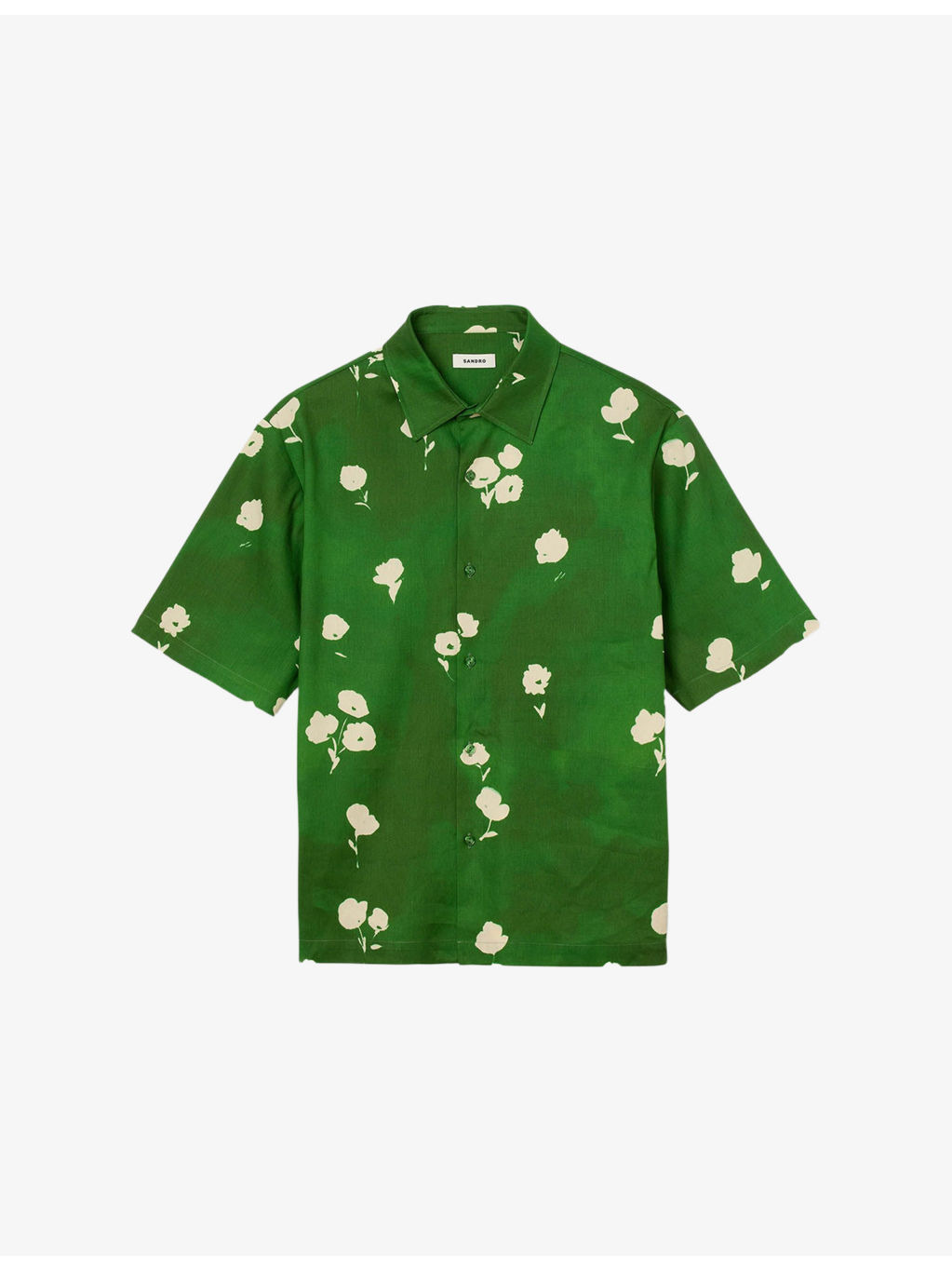 PRODUCT DETAILS - Sandro stretch linen-blend shirt - 50% linen, 47% viscose, 3% elastane - Exposed button fastening at front - Regular fit, collar, short sleeves, all-over floral print, all-over faded effect - Dry clean only - Lightweight, non-stretch Ref: R04505985