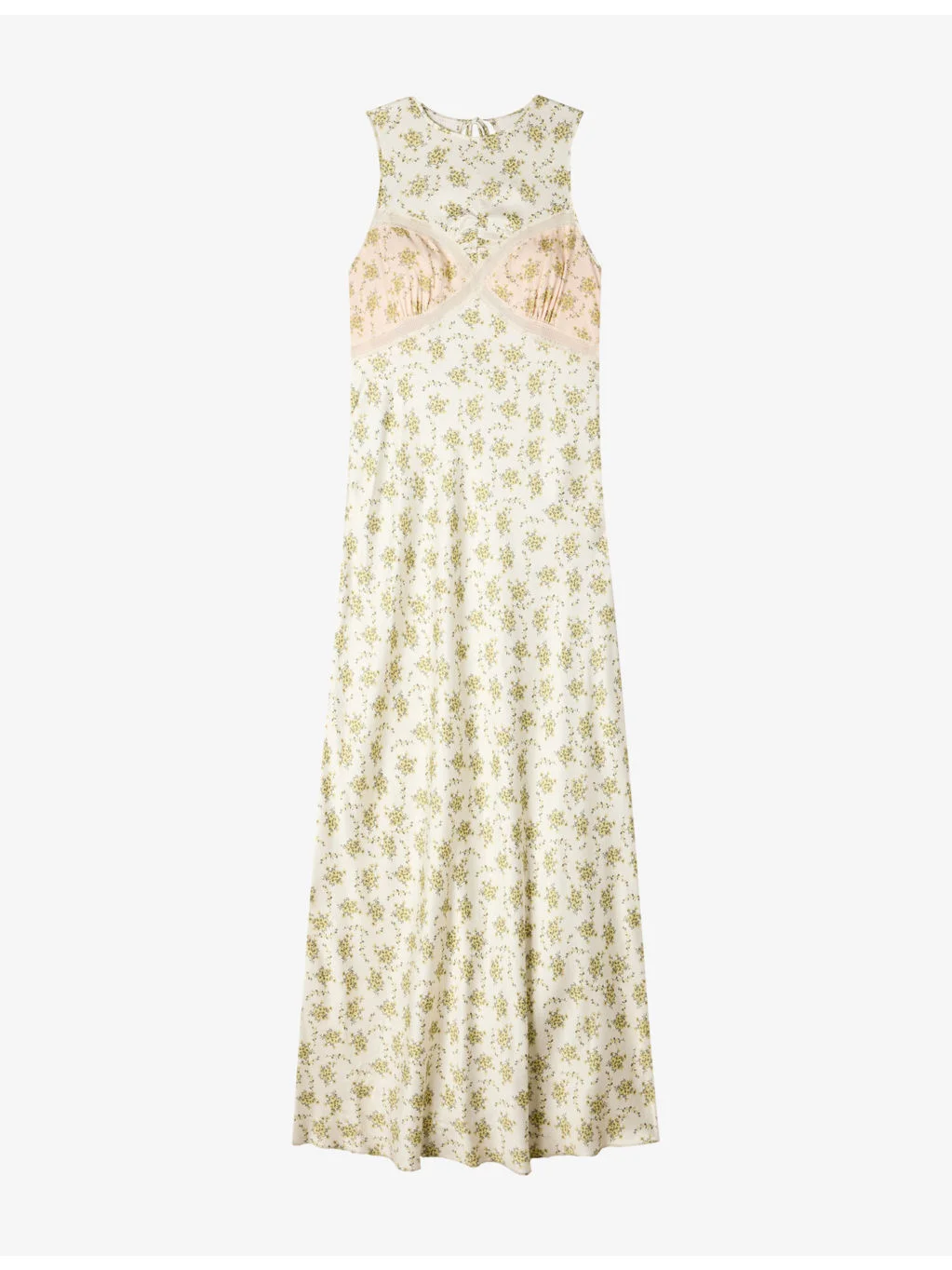 PRODUCT DETAILS - Sandro satin maxi dress - 100% viscose - Zip fastening - Regular fit, round-neck sleeveless, cut-out back with tie, lace trim, all-over floral print - Dry clean - True to size - Model is 5ft 11in/1.80m and wears a size UK 8 - Lightweight, non-stretch Ref: R04598486