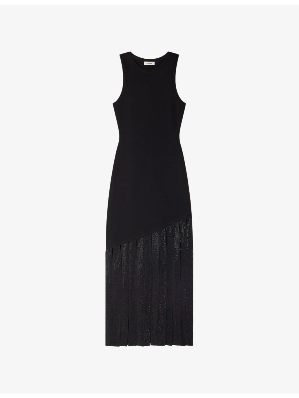 PRODUCT DETAILS - Sandro stretch-knit dress - 76% viscose, 21% polyamide, 3% elastane - Slim fit, round neck, sleeveless, fringed trim - Hand wash - True to size - Model is 5ft 10in/1.78m and wears a size UK 8 - Midweight, slight stretch Ref: R04501206