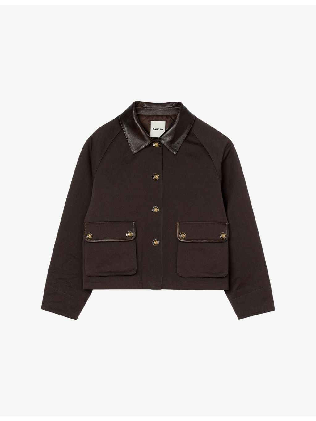 PRODUCT DETAILS - Sandro cotton coat - 100% cotton - Exposed popper fastenings at front - Regular fit, contrast collar, long sleeves, two patch pockets at the side, gold-tone hardware - Dry clean - True to size - Model is 5ft 9in/1.75m and wears a size UK 8 - Midweight, non-stretch Ref: R04501194