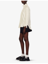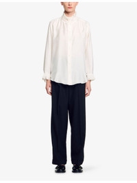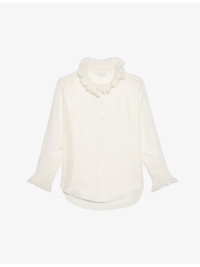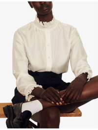 PRODUCT DETAILS - Sandro silk shirt - 100% silk; secondary fabric 67% linen, 33% silk; buttons 100% nacre - Buckle fastening - High ruffled collar, smocked detail at neck, long sleeves, ruffled cuffs, straight fit, stepped hem Ref: R03787604