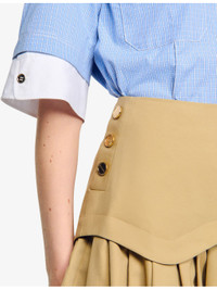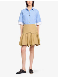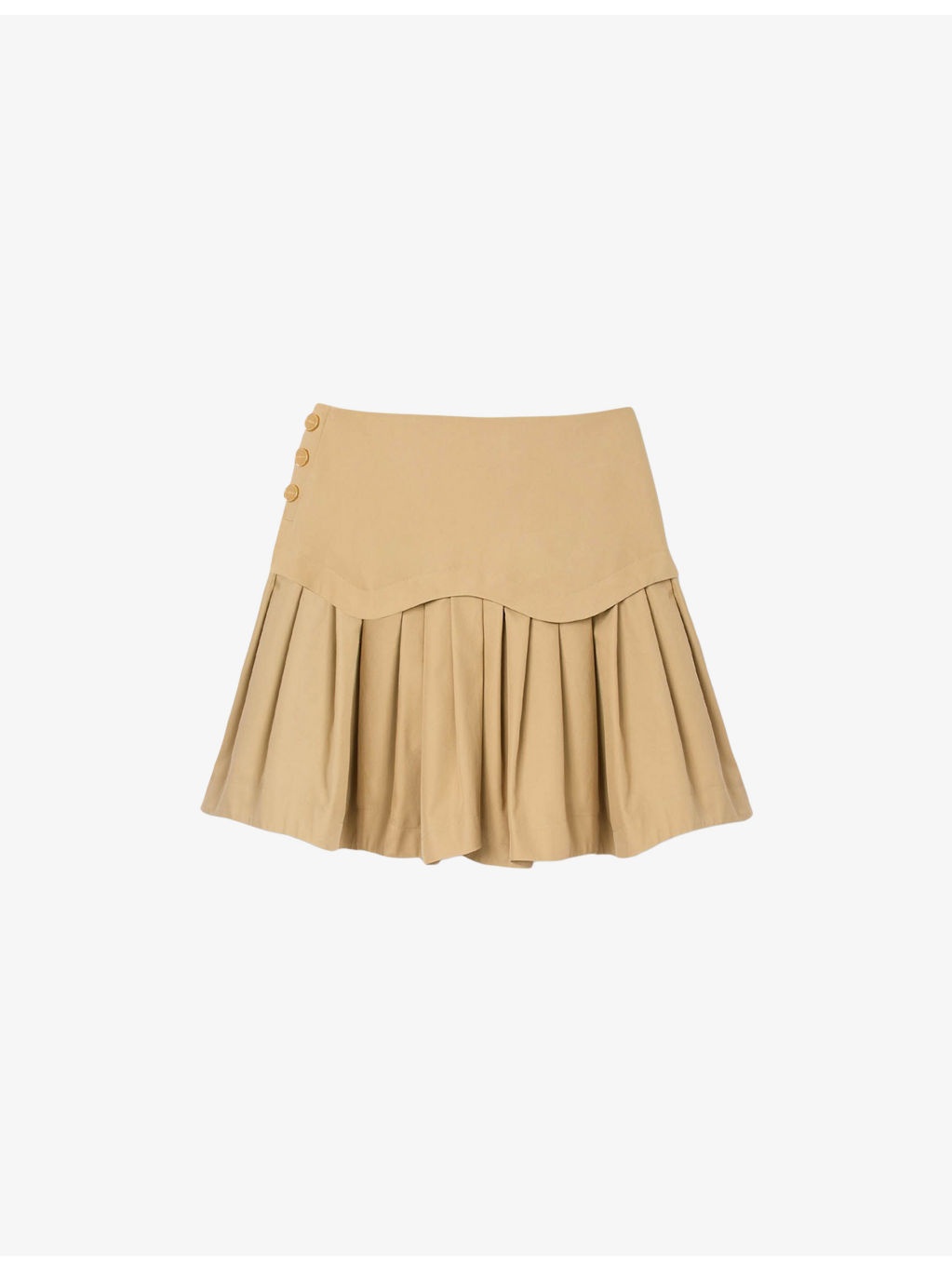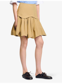 PRODUCT DETAILS - Sandro cotton mini skirt - 100% cotton - Zip fastening - Regular fit, high-rise, buttons to side, flared ruffled hem - Dry clean - True to size - Model is 5ft 9in/1.75m and wears a size UK 8 - Lightweight, non-stretch Ref: R04490513