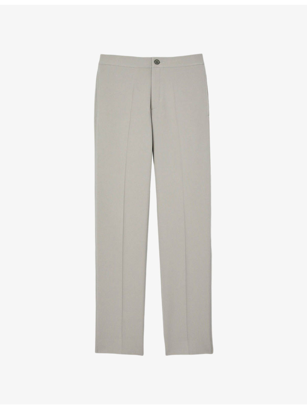 PRODUCT DETAILS - Sandro stretch-jersey trousers - 68% polyester, 28% viscose, 4% elastane - Exposed button and concealed zip-fly fastenings at front - Slim fit, mid rise, tapered leg, elasticated waistband, slip pockets at sides, pressed centre creases at front and back, two welt pockets at back - Dry clean only - Size 32: Rise 10.5in / 26cm, inside leg 32in / 81cm, leg opening 14in / 35cm - Model is 6ft 1in/1.85m and wears a size UK 32 - Midweight, stretchy Ref: R03630704