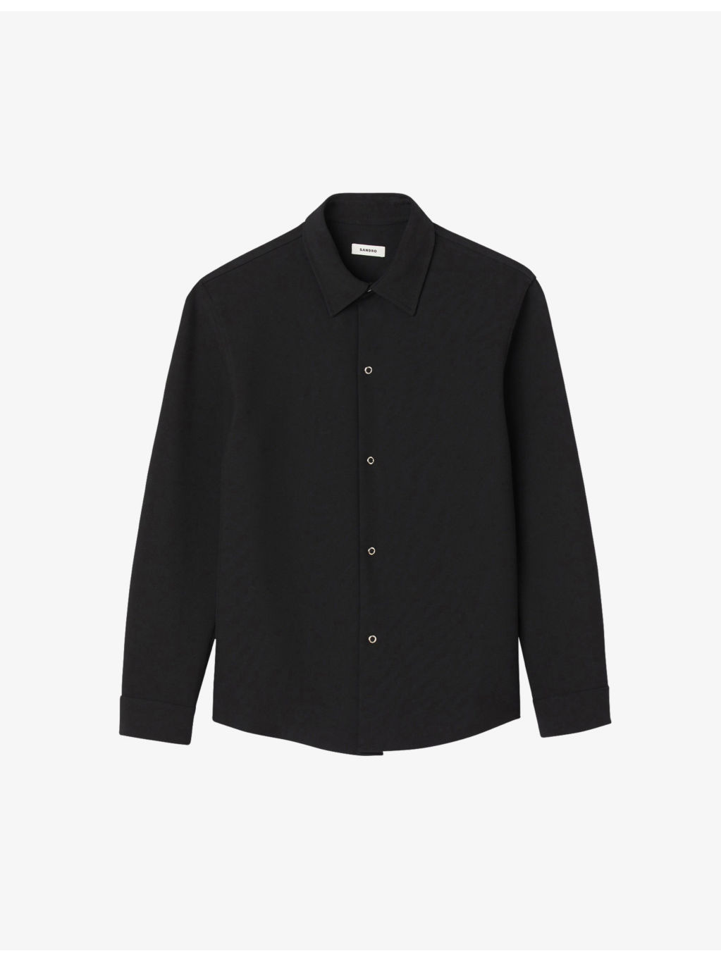 PRODUCT DETAILS - Sandro stretch-woven shirt - 68% polyester, 28% viscose, 4% elastane - Exposed button fastening at front - Regular fit, collared, long sleeves, buttoned cuffs - Machine wash cold - Model is 6ft 2in/1.88m and wears a size medium - Lightweight, slight stretch Ref: R04194633