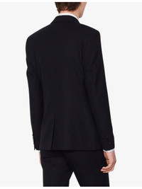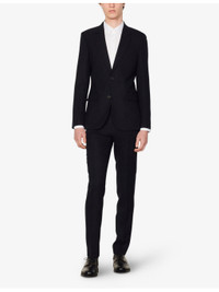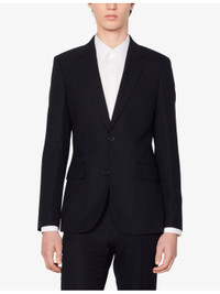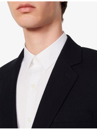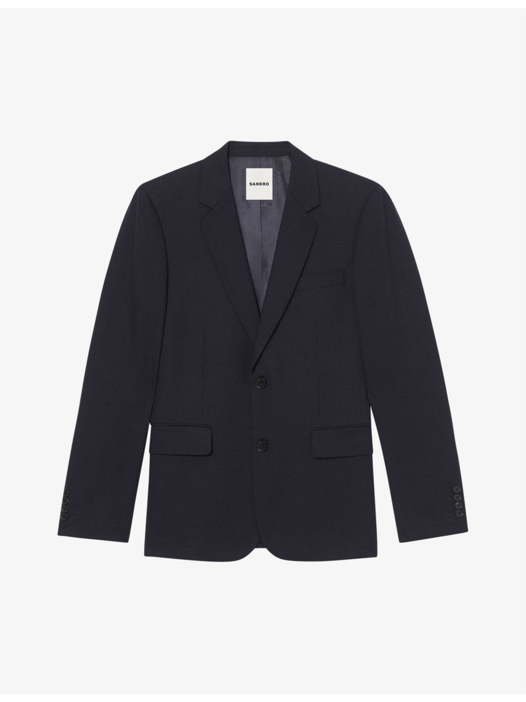 PRODUCT DETAILS - Sandro wool blazer - 100% wool; lining 100% acetate - Button fastening - Notch lapels, long sleeves, single-breasted, padded shoulders, four functioning buttons at cuffs, one buttonhole at lapel, one welt pocket at chest, two patch pockets at front, all-over woven pattern, single vent at back hem, four interior pockets, fully lined - Dry clean - Model is 6ft/1.83m and wears a size UK 40 Ref: R03851779