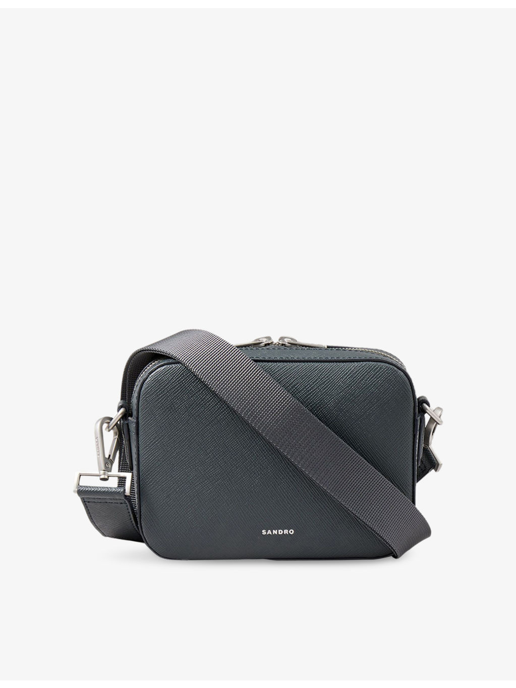 PRODUCT DETAILS - Sandro leather cross-body bag - 100% leather - Zip fastening - Rectangle shape, adjustable shoulder strap, branded logo at front, one main compartment, one internal slip pocket, silver-tone hardware, all-over grained leather - Height 13cm, width 17.5, depth 5cm - Specialist leather clean Ref: R04197797