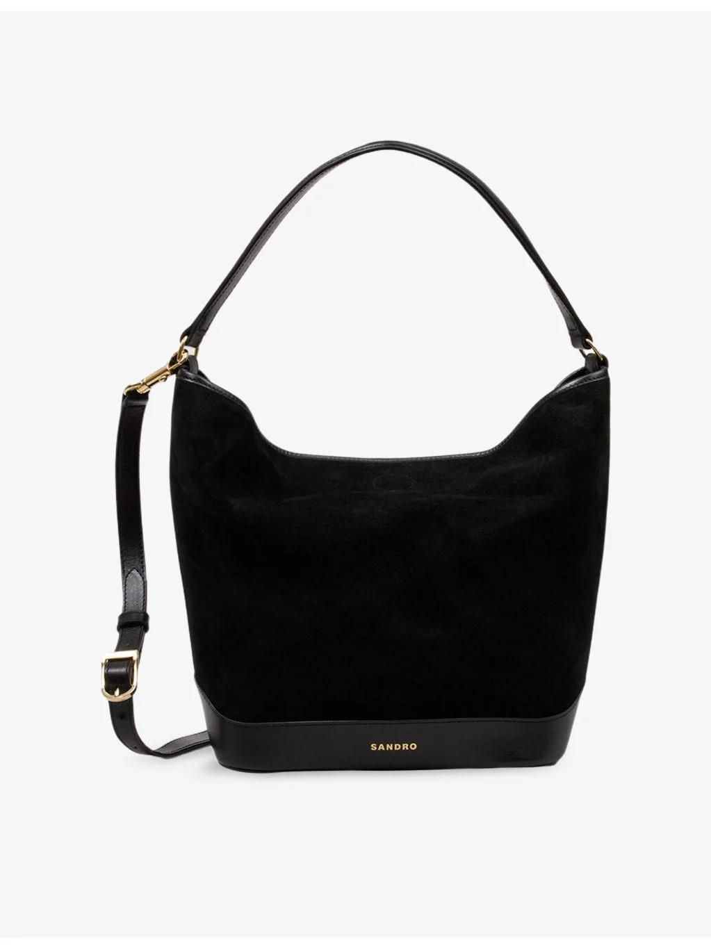 PRODUCT DETAILS - Sandro suede tote - 100% calfskin split leather - Magnetic fastening - Slouchy design, top handle, removable strap, logo embossed, gold-tone hardware - Dimensions: Height 23.5cm, width 28cm, depth 13cm - Specialist leather clean Ref: R04490622