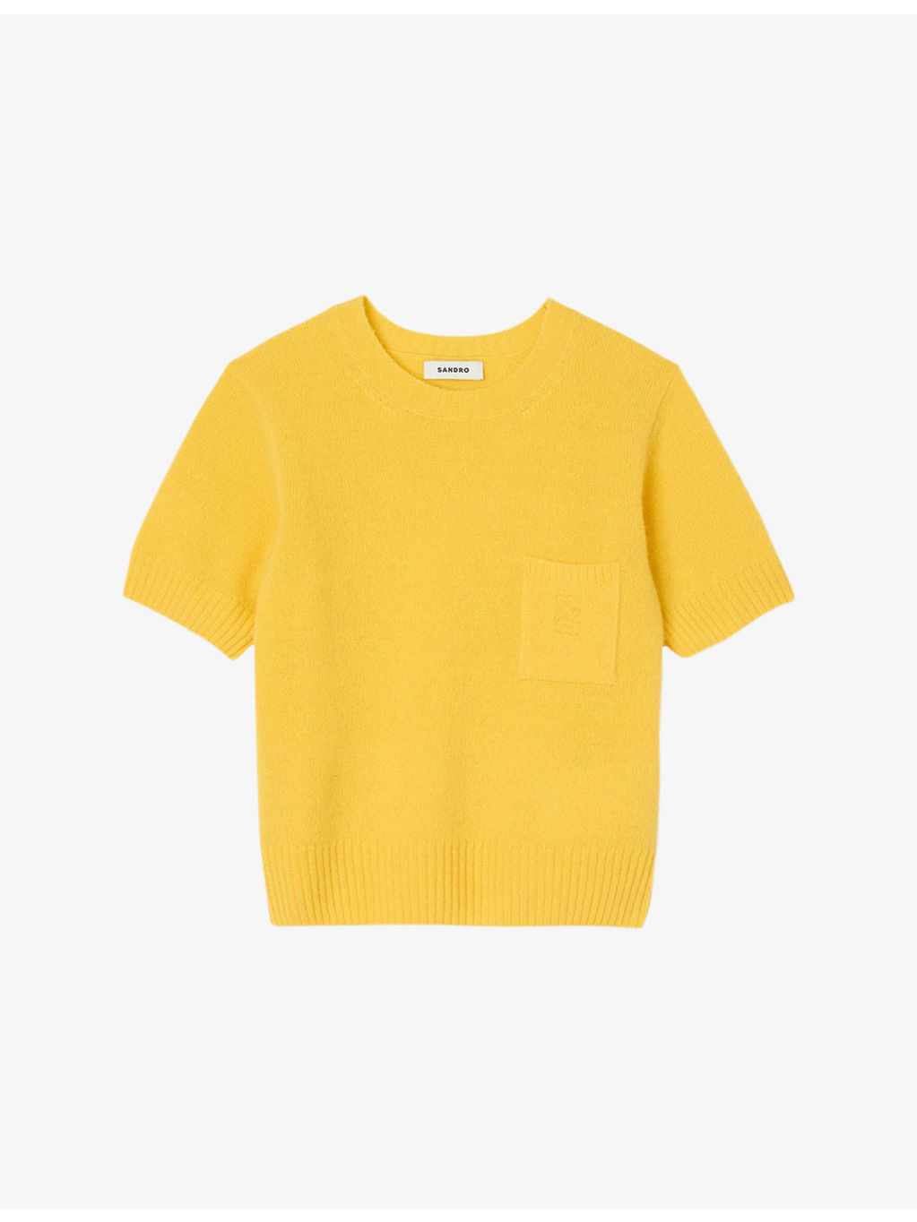 PRODUCT DETAILS - Sandro wool jumper - 100% wool - Regular fit, round neck, patch pocket at chest with logo embroidery, short sleeves - Hand wash - True to size - Model is 5ft 9in/1.75m and wears a size UK 8 - Midweight, non-stretch Ref: R04501179