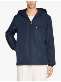 PRODUCT DETAILS - Sandro nylon windbreaker jacket - 100% nylon - Zip fastening - Windbreaker jacket, classic fit, drawstring hood with stoppers, long sleeves with elasticated cuff, zipped chest pocket, lined and padded - Machine wash mild - Model is 6ft 2in/1.88m and wears a size medium - Midweight, non-stretch Ref: R04415557