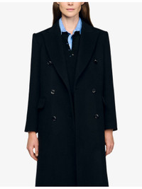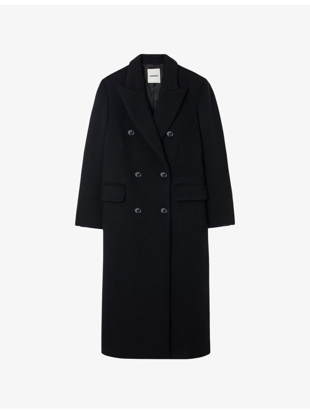 PRODUCT DETAILS - Sandro wool coat - 75% wool, 25% polyamide - Exposed button fastening at front - Regular fit, lapel collar, long sleeves, two pockets at the side, double breasted - Dry clean - True to size - Model is 5ft 9in/1.75m and wears a size UK 8 - Midweight, non-stretch Ref: R04501214