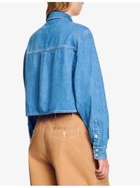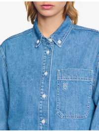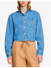 PRODUCT DETAILS - Sandro denim shirt - 100% cotton - Button fastening - Regular fit, collar, long sleeves, buttoned cuffs, chest pocket - Machine wash mild - True to size - Model is 5ft 10in/1.78m and wears a size UK 8 - Midweight, non-stretch Ref: R04411903