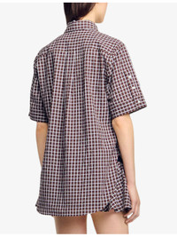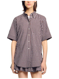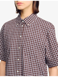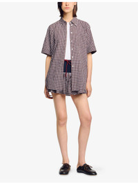 PRODUCT DETAILS - Sandro stretch-cotton shirt - 99% cotton, 1% elastane - Button fastening - Oversized fit, collar, short sleeves, chest pocket, all-over checked pattern - Machine wash at 30°C - True to size - Model is 5ft 10in/1.78m and wears a size UK 8 - Lightweight, slight stretch Ref: R04490509