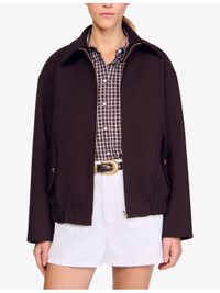 PRODUCT DETAILS - Sandro woven jacket - 54% polyester, 44% wool, 2% elastane - Zip fastening - Oversized fit, collar, long sleeves, side pockets, elasticated hem - Dry clean - True to size - Model is 5ft 9in/1.75m and wears a size UK 8 - Midweight, slight stretch Ref: R04490511