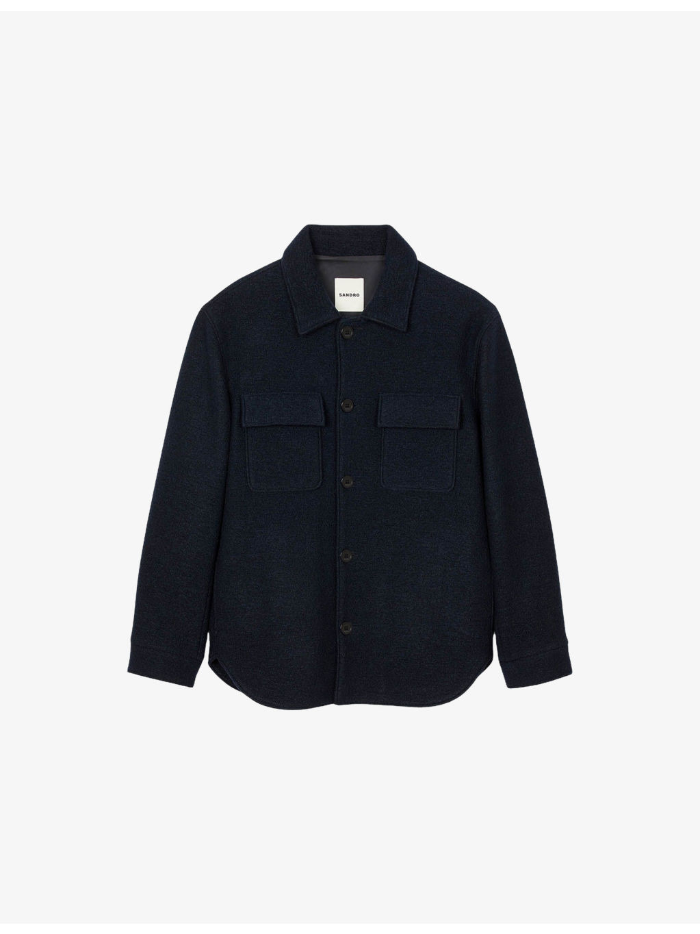 PRODUCT DETAILS - Sandro wool overshirt - 100% wool - Exposed button fastening at front - Regular fit, collared, two patch pockets at the chest, long sleeves - Dry clean - Model is 6ft 1in/1.85m and wears a size UK 38 - Midweight, non-stretch Ref: R04505939