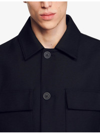 PRODUCT DETAILS - Sandro woven overshirt - 55% polyester, 45% virgin wool - Exposed button fastening at front - Relaxed fit, classic collar, long sleeves, button cuffs, two flap patch pockets at front, straight hem - Machine wash mild - Midweight, non-stretch Ref: R04256011