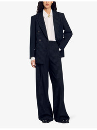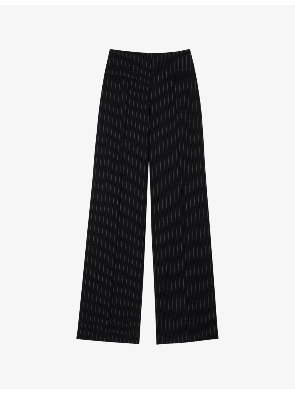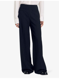 PRODUCT DETAILS - Sandro stretch-woven trousers - 54% polyester, 44% wool, 2% elastane - Zip fastening - Regular fit, mid-rise, straight leg, side pockets, all-over pinstriped pattern - Dry clean - True to size - Lightweight, slight stretch Ref: R04337266