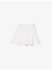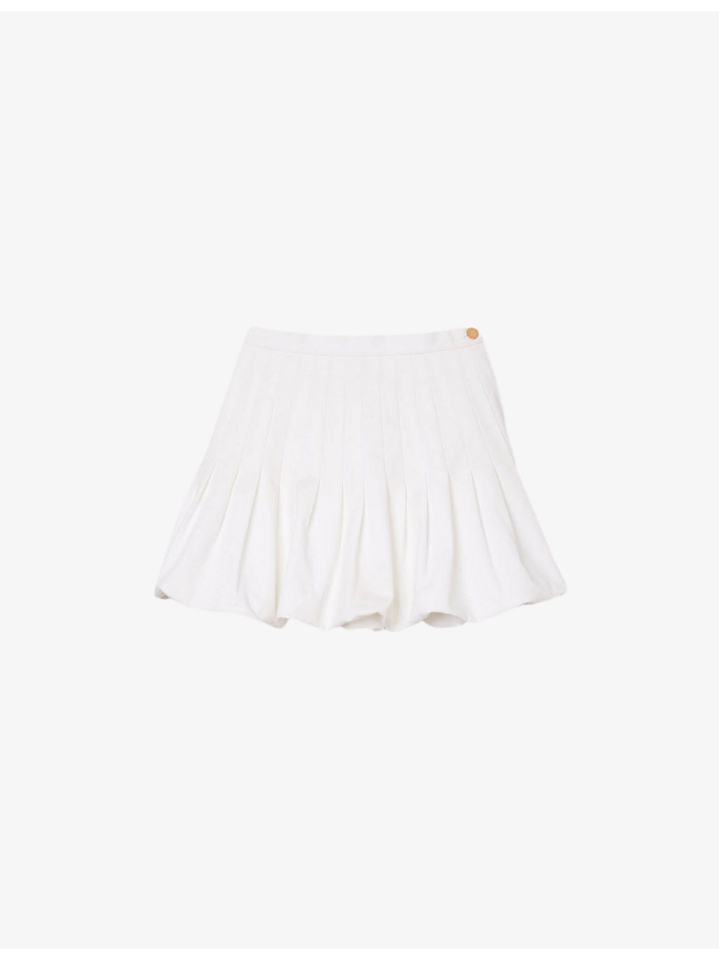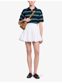 PRODUCT DETAILS - Sandro cotton mini skirt - 100% cotton - Zip fastening - Regular fit, high-rise, branded buttons to sides, pleated panel, bubble hem - Machine wash at 30°C - True to size - Model is 5ft 10in/1.78m and wears a size UK 8 - Lightweight, non-stretch Ref: R04490588