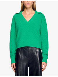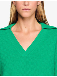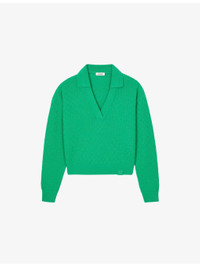 PRODUCT DETAILS - Sandro wool and cashmere-blend jumper - 90% wool, 10% cashmere - Regular fit, polo collar, long sleeves, ribbed cuffs, logo embroidery at the hem, textured design - Hand wash - True to size - Model is 5ft 9in/1.75m and wears a size UK 8 - Midweight, non-stretch Ref: R04501203