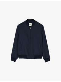 Regular-fit ribbed-collar wool-blend bomber jacket