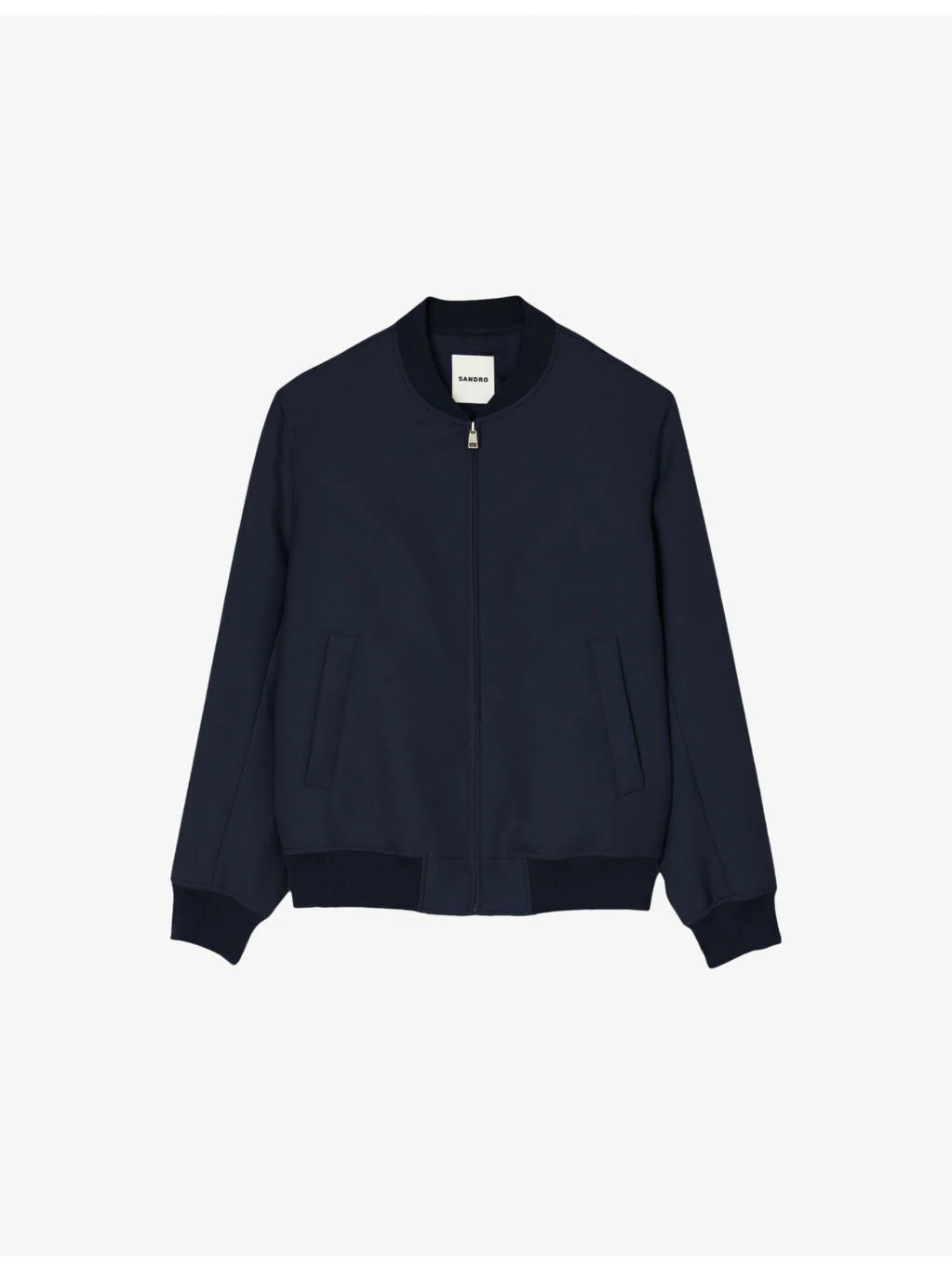 PRODUCT DETAILS - Sandro wool-blend jacket - 54% polyester, 46% virgin wool - Exposed zip fastening at front - Regular fit, ribbed collar, long sleeves, ribbed cuffs, two pockets at the side, straight hem - Dry clean - Model is 6ft 2in/1.88m and wears a size medium - Midweight, non-stretch Ref: R04320607
