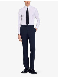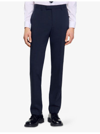 PRODUCT DETAILS - Sandro wool trousers - 100% virgin wool - Button, hook-and-eye and zip-fly fastening - Regular fit, belt loops, two pockets at the side, straight leg - Dry clean - Model is 6ft 2in/1.88m and wears a size UK 38 - Midweight, non-stretch Ref: R04420112