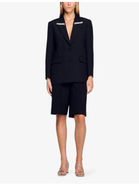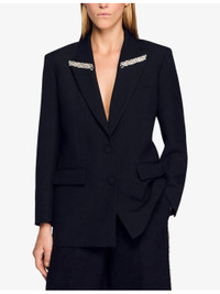 PRODUCT DETAILS - Sandro woven jacket - 55% polyester, 45% wool - Concealed zip fastening at side - Regular fit, peak lapels with rhinestone embellishment, long sleeves, two flap pockets at the side, single breasted - Dry clean - True to size - Model is 5ft 9in/1.75m and wears a size UK 8 - Midweight, non-stretch Ref: R04501219