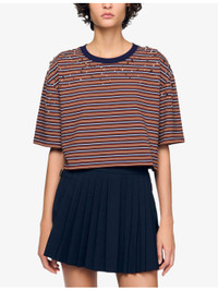 STRIPED RHINESTONE T-SHIRT
