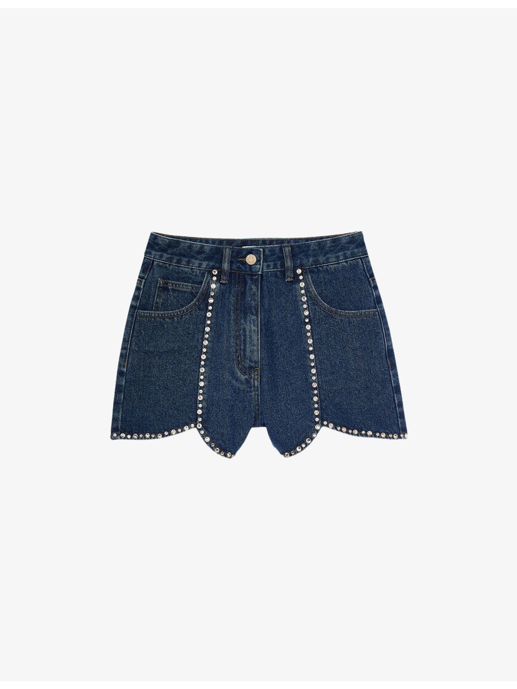 Rhinestone-Embellished Tulip-Hem Denim Shorts
