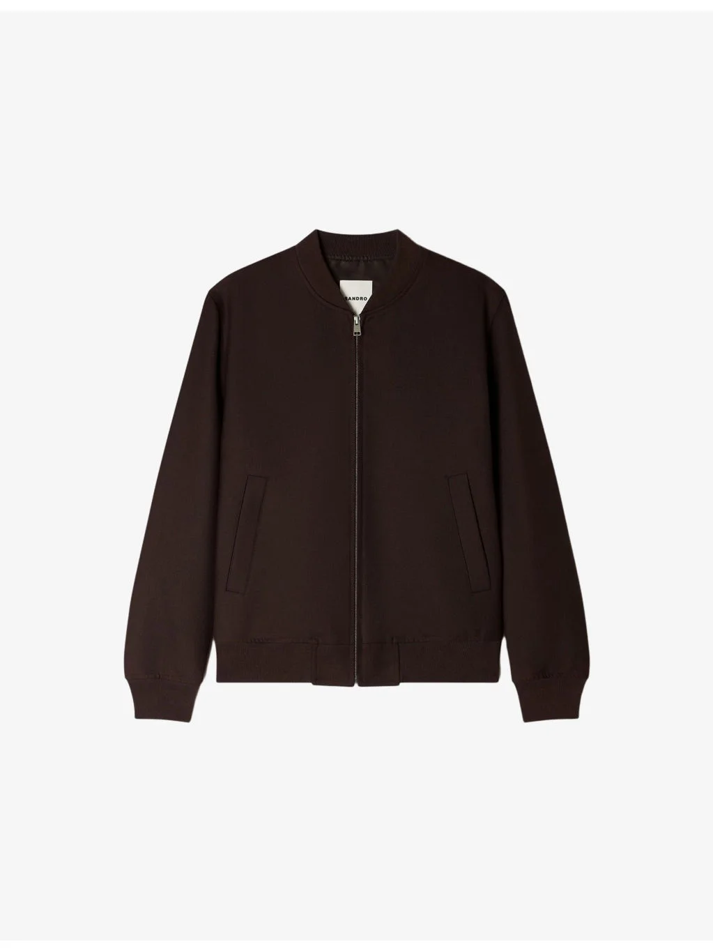 PRODUCT DETAILS - Sandro technical wool-blend jacket - 54% polyester, 46% virgin wool - Exposed zip fastening at front - Regular fit, ribbed collar, long sleeves, ribbed cuffs, two pockets at the side, straight hem - Dry clean - Model is 6ft 2in/1.88m and wears a size medium - Midweight, non-stretch Ref: R04320607