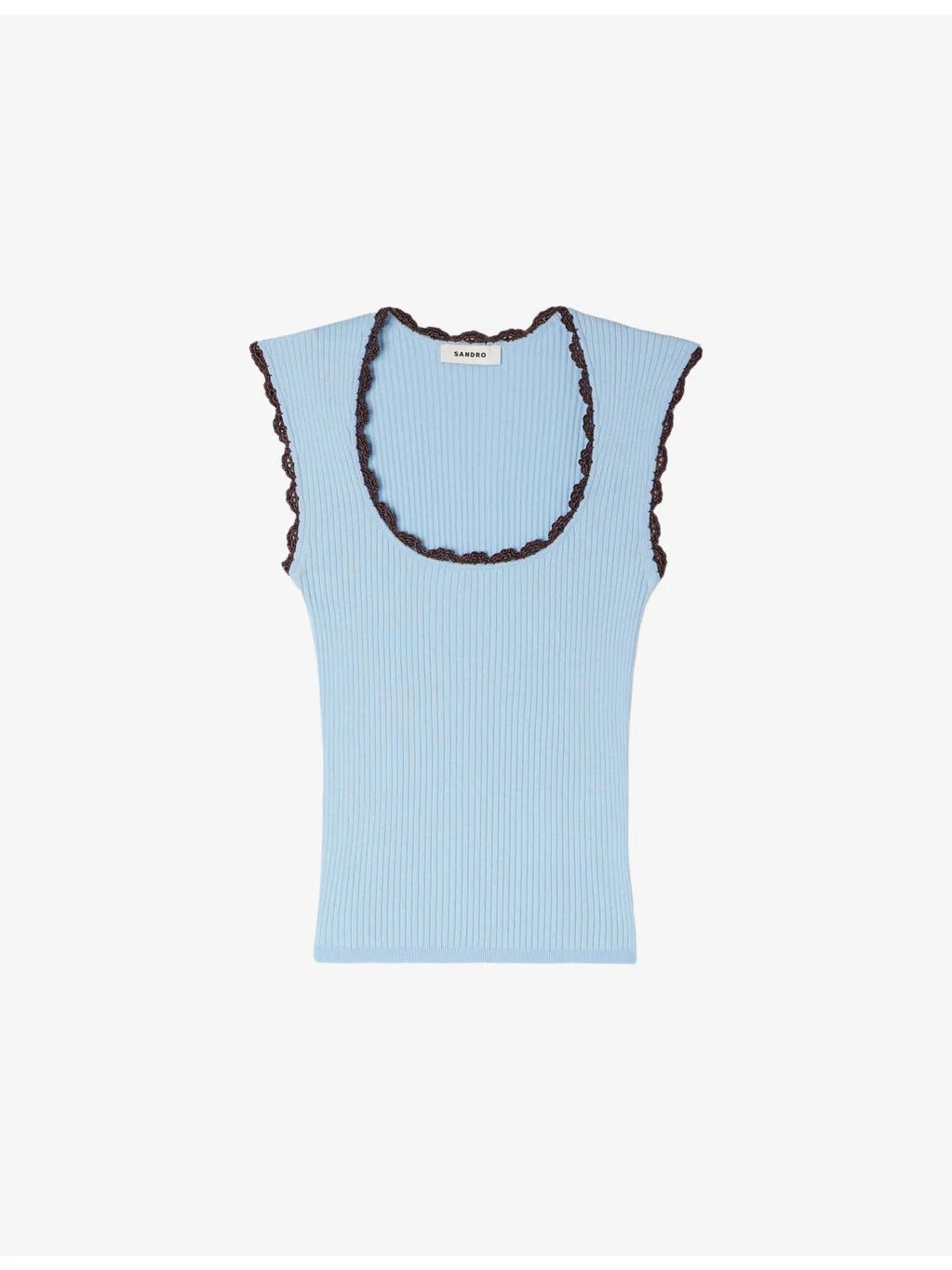 PRODUCT DETAILS - Sandro knitted top - 84% viscose 16% polyester - Slim fit, round neck with crochet trim, ribbed - Hand wash - True to size - Model is 5ft 11in/1.80m and wears a size UK 8 - Midweight, slight stretch Ref: R04598558