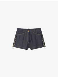 Ring-Embellished Contrast-Stitch Denim Shorts