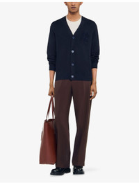 PRODUCT DETAILS - Sandro knitted cardigan - 62% viscose, 38% polyamide - Exposed button fastening at front - Regular fit, V-neck, rope-effect embroidery at the chest, long sleeves - Hand wash - Model is 6ft/1.83m and wears a size medium - Midweight, non-stretch Ref: R04505979