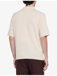PRODUCT DETAILS - Sandro knitted polo - 64% viscose, 36% polyamide - Exposed button fastening at front - Regular fit, polo collar with buttons, rope-effect embroidery at the chest, short sleeves - Hand wash - Model is 6ft/1.83m and wears a size medium - Midweight, non-stretch Ref: R04505978