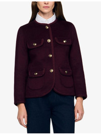 PRODUCT DETAILS - Sandro wool-blend jacket - 80% wool, 20% polyamide - Button fastening - Regular fit, round-neck, long sleeves, buttoned cuffs, four pockets to front, braided trim - Dry clean - True to size - Model is 5ft 10in/1.78m and wears a size UK 8 - Midweight, non-stretch Ref: R04502000