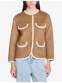 PRODUCT DETAILS - Sandro wool-blend jacket - 80% wool, 20% polyamide - Button fastening - Regular fit, round-neck, long sleeves, buttoned cuffs, four pockets to front, braided trim - Dry clean - True to size - Model is 5ft 10in/1.78m and wears a size UK 8 - Midweight, non-stretch Ref: R04502000