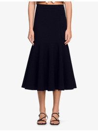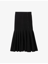 PRODUCT DETAILS - Sandro stretch-woven midi skirt - 64% polyester, 32% viscose, 4% elastane - Zip fastening - Regular fit, high-rise, decorative buttons, ruffle hem - Dry clean - True to size - Model is 5ft 10in/1.78m and wears a size UK 8 - Lightweight, slight stretch Ref: R04501161