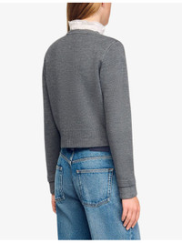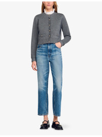 PRODUCT DETAILS - Sandro wool-blend cardigan - 51% acrylic, 49% wool - Exposed button fastenings at front - Regular fit, detachable ruffled collar, long sleeves, turn-up cuffs, two front piped pockets, gold-toned buttons, ribbed trims - Hand wash - True to size - Midweight, slight stretch Ref: R04490546