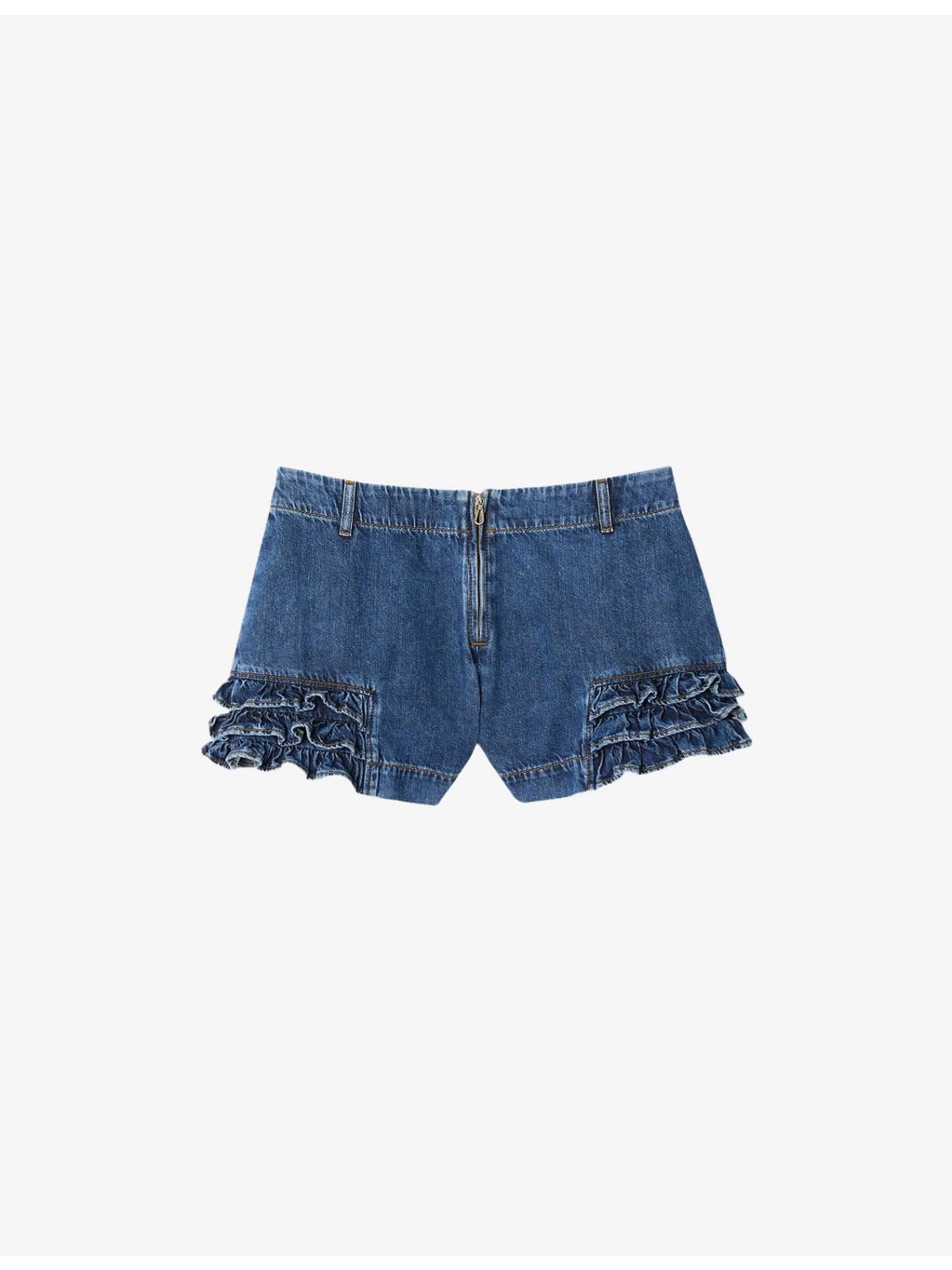 PRODUCT DETAILS - Sandro denim shorts - 100% cotton - Zip fastening - Regular fit, mid-rise, belt loops, ruffle hem - Machine wash at 30°C - True to size - Model is 5ft 10in/1.78m and wears a size UK 8 - Midweight, non-stretch Ref: R04490605