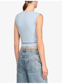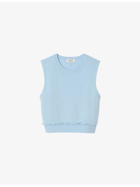 PRODUCT DETAILS - Sandro wool and cashmere-blend jumper - 90% wool, 10% cashmere; rib 85% wool, 10% cashmere, 4% polyamide, 1% elastane - Slips on - Regular fit, round neck, sleeveless, ruffled trim to the waist, cropped hem, ribbed trim to the collar and hem - Hand wash - True to size - Model is 5ft 10in/1.78m and wears a size UK 8 - Lightweight, non-stretch Ref: R04326680