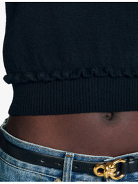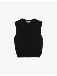 PRODUCT DETAILS - Sandro wool and cashmere-blend jumper - 90% wool, 10% cashmere; rib 85% wool, 10% cashmere, 4% polyamide, 1% elastane - Slips on - Regular fit, round neck, sleeveless, ruffled trim to the waist, cropped hem, ribbed trim to the collar and hem - Hand wash - True to size - Model is 5ft 10in/1.78m and wears a size UK 8 - Lightweight, non-stretch Ref: R04326680