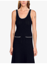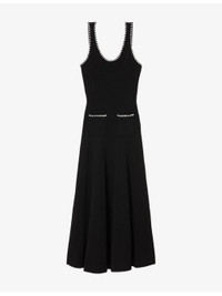 PRODUCT DETAILS - Sandro stretch-knit dress - 50% viscose, 48% polyamide, 2% elastane - Slips on - Slim fit, scoop neck, sleeveless, bead embellishment, two embellished welt pockets at the side - Hand wash - True to size - Model is 5ft 9in/1.75m and wears a size UK 8 - Midweight, slight stretch Ref: R04490553