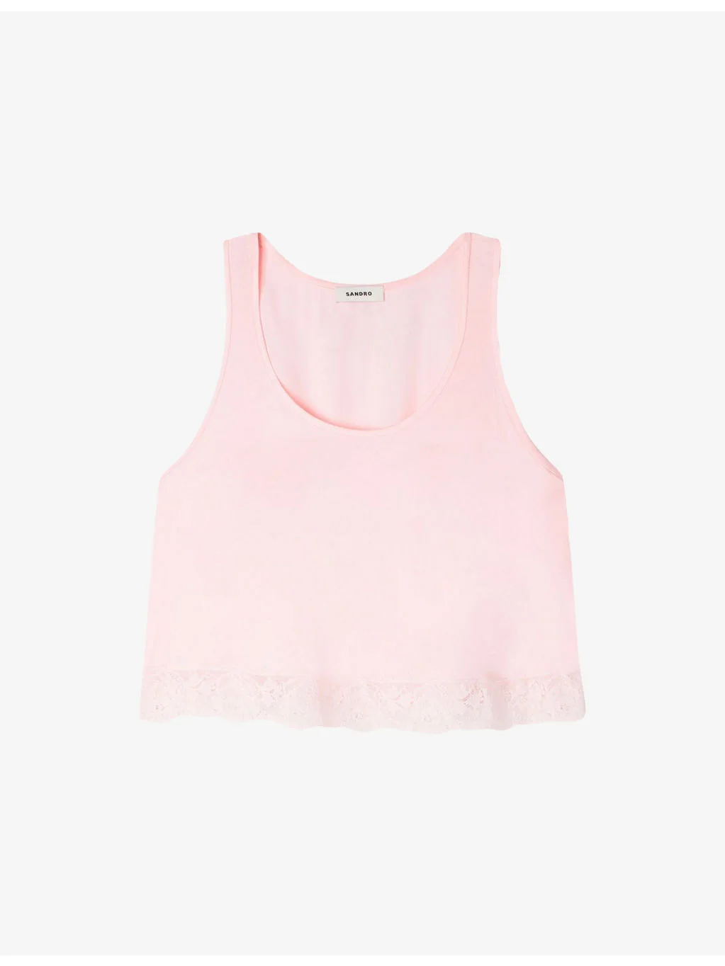 PRODUCT DETAILS - Sandro satin top - 100% viscose - Regular fit, scoop neck, sleeveless, lace hem - Dry clean - True to size - Model is 5ft 9in/1.75m and wears a size UK 8 - Lightweight, non-stretch Ref: R04598508
